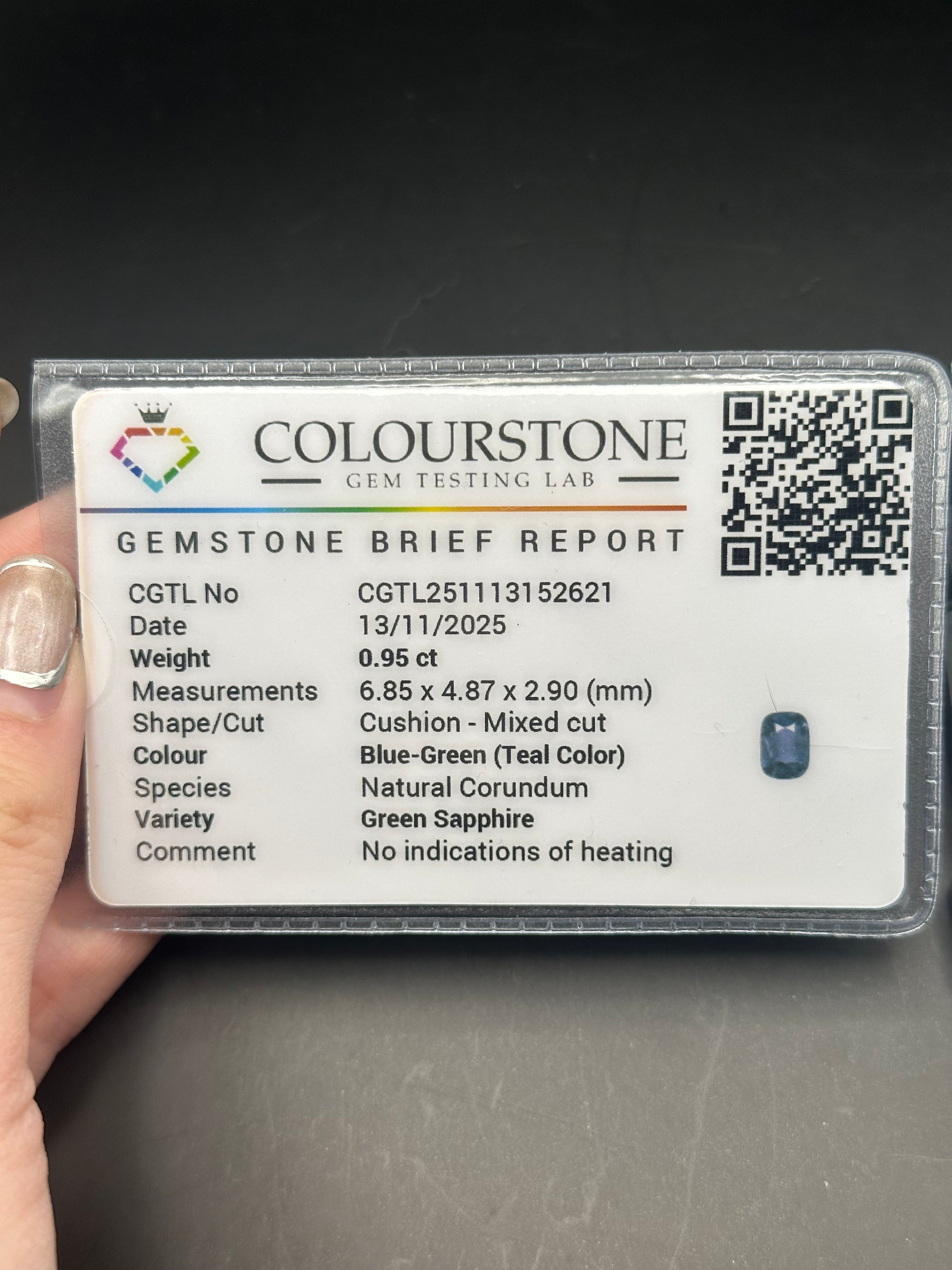 teal sapphire (cushion cut) .95 ct