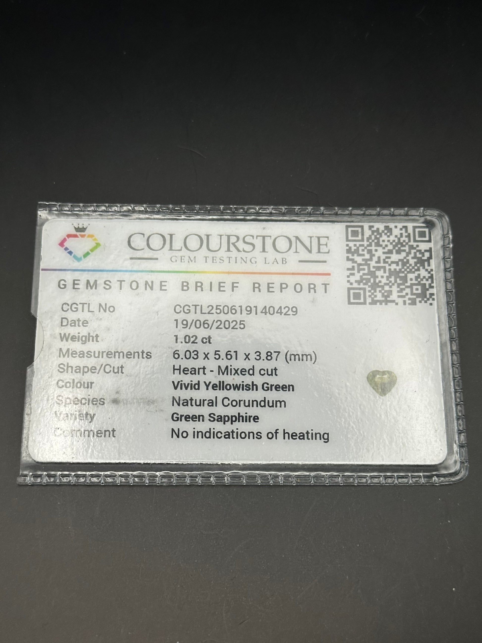 Yellowish Green Sapphire (heart) - 1.02 ct